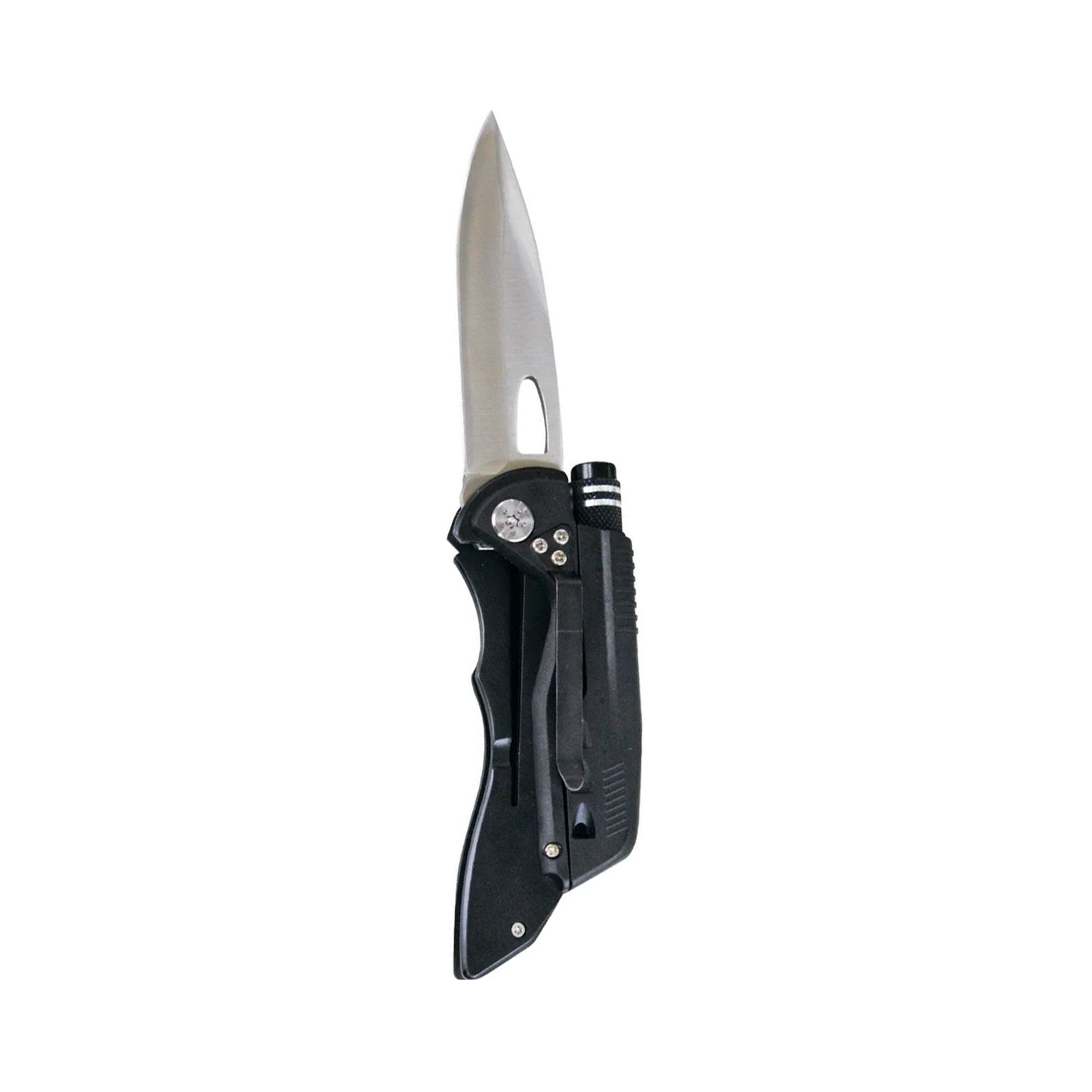 Além de tudo isso, este canivete conta também com um original apito, que produz um sonido alto, extremamente eficiente quando é necessário resgate ou até mesmo para afugentar algum animal silvestre.